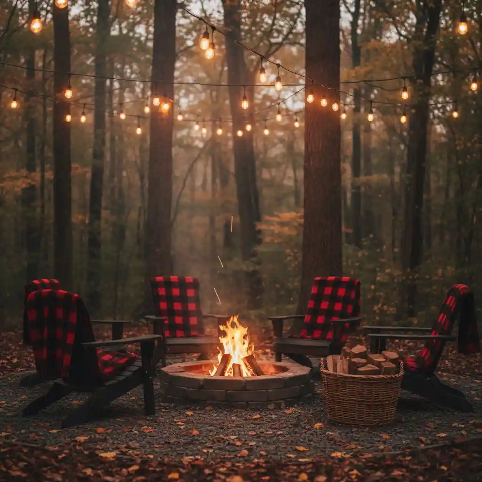 The "Cozy Fire Pit Vignette": Hang string lights overhead, and provide a blanket basket and a hot cocoa station.
